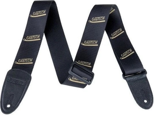 Strap for guitar from Gretsch. This poly strap features the Gretsch logo with vibrato arm graphic. Leather ends with embossed logo.