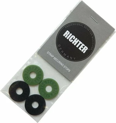 The set of 2 black and 2 olive green rubber stoppers is intended for fixing the guitar strap to the musical instrument. They secure the strap from accidentally slipping over the pin.